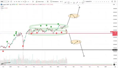 Накопление готово в DAX Согласно авторскому индикатору я вижу на Д1 фрейме работы в одном кластере лонгов и шортов. Обычно в такой зоне идет накопление максимальных плечей. Дальше рынок начнет вых