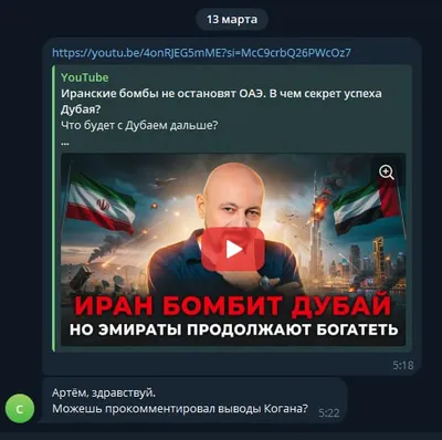 Комментировать выводы Когана не буду он сам сказал его дети там, это будет не корректно могу описать ситуацию в медиа среде: 1. Дубай сразу включил антикриз в медиа средне и уже записаны сотни видео