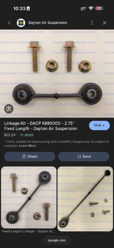 Вот тяга от air suspension, я написал на оригинальный завод в Огайо. Они говорят у нас в наличии нет, но можем изготовит за месяц, или пришли старую и мы новые резинки воткнем туда и покрасим. Как нов