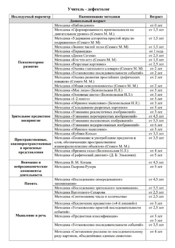 Пакет диагностических методик учителя-дефектолога