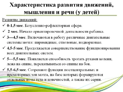 Характеристика развития движений, мышления и речи