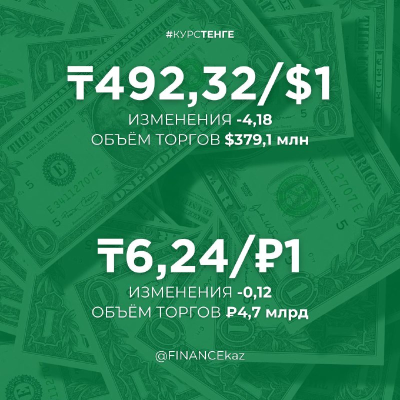 💸 Тенге умеет удивлять! Видимо кэрри продолжается, а такое предолжение никто переварить в стране не может — объёмы выросли, курс укрепился до 492,32 тенге за один доллар и 6,24 тенге за один российск