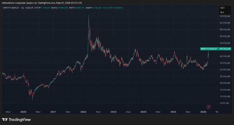 💸 Наше всё в тенге дорожает и достигло уровня осени 2023 года. До этого так дорого нефть в тенге стоила только после начала войны России против Украины и это при том, что сейчас курс ниже, чем после