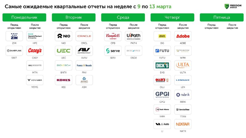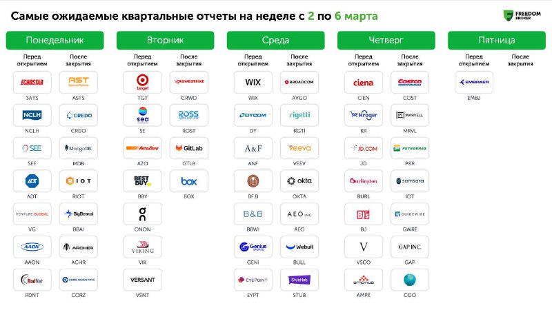 🗓 Сезон корпоративной отчетности на финишной прямой: результаты опубликовали около 94% компаний из S&P 500, а на этой неделе отчитаются еще около 10 представителей индекса. ➖ Главным событием недели