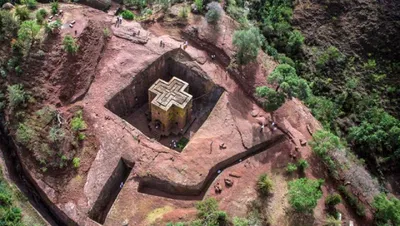К разнообразию культовых построек относится такое вот чудо. Это монолитная церковь Святого Георгия в городе Лалибела XIII века (Эфиопия), хотя археологи предполагают, что храм был создан гораздо рань