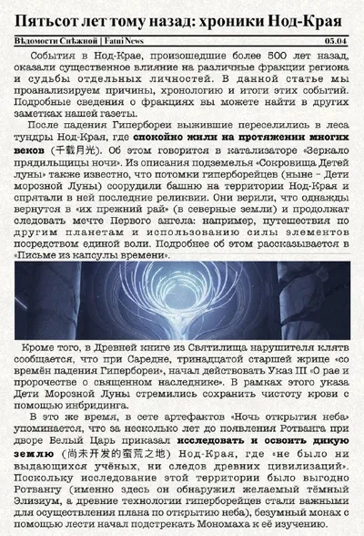 Вѣдомости Снѣжной | Fatui News | Ведомости Снежной