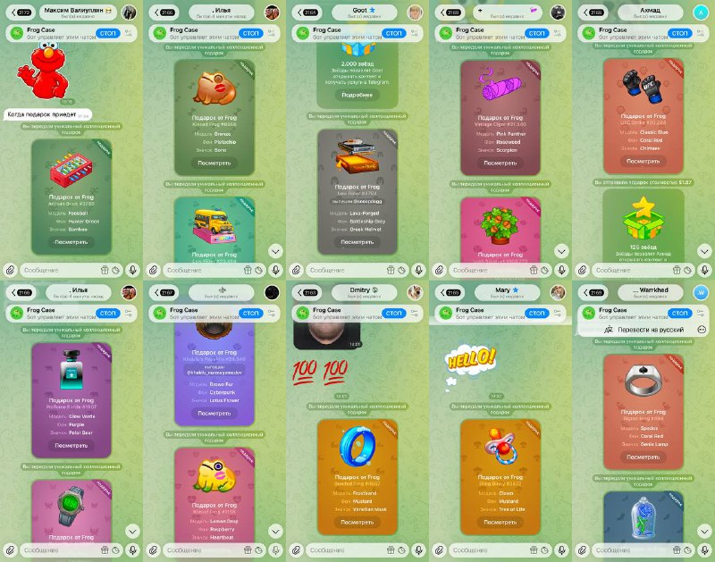 🎁 Вот такие крутые подарки выигрывают наши игроки в платных кейсах! А ведь это только малая часть, от всех выводов подарков и звезд за последнее время… 🐸 Играть в @FrogCaseBot 💳 Пополнить баланс