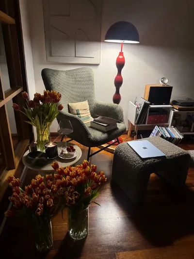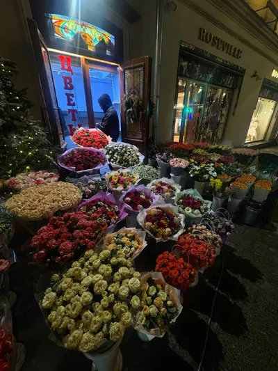 Это мне Олег покупает огромную охапку тюльпанов, потому что сам захотел. Буду до дома идти чуть подпрыгивая и с улыбкой во все зубы) Приятность !