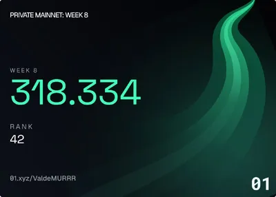 🤯 01 — распределили поинты за Week 8 ⚪️Результаты На данный момент это лучшая моя неделя, в которой я получил 318.33 PTS. Всего я наторговал $22500 вольюма как maker, за что заплатил чуть менее $8.