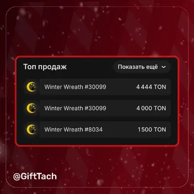 🎁 Самый дорогой венок был продан сегодня за 4 444 TON (≈ $5 550) На чёрном фоне таких всего 3 @Gifttach • GiftTop