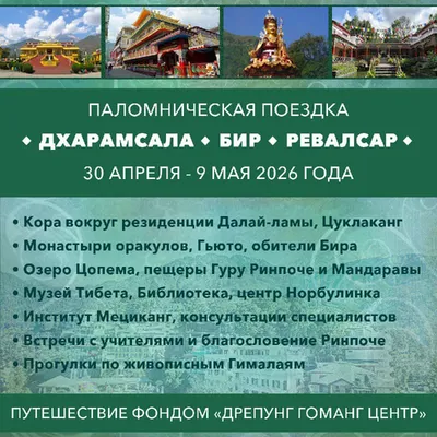 ПАЛОМНИЧЕСКИЙ ТУР В ДХАРАМСАЛУ, БИР И РЕВАЛСАР 30 АПРЕЛЯ - 9 МАЯ 2026 ГОДА ✨Путешествие с Фондом «Дрепунг Гоманг Центр»✨ Приглашаем вас в паломничество! Мы посетим Маклеодгандж – место, где на прот