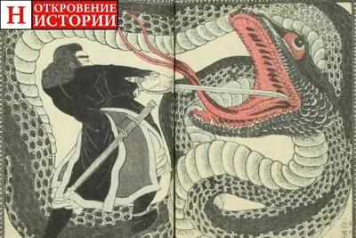 Второй президент США Джон Адамс сражается с гигантской змеей, из японской книги о войне за независимость, 1861 год. ✍️ Откровение Истории