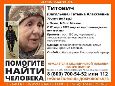⚠️ Пропал(а) йорк с пожилой женщиной 📍 г. Чехов - МО, Москва 22 марта 2026г Пропала бабушка с собакой породы йоркширский терьер Шел четвертый день, а у нас нет зацепок…Как такое может быть, чтобы б