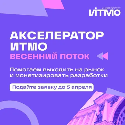 ⚡️ Есть идея для стартапа, но не знаете, с чего начать? Приглашаем на весенний поток Акселератора ИТМО — место, где вам помогут выйти на рынок и монетизировать свои разработки! Что вас ждет? 👉 Рабо