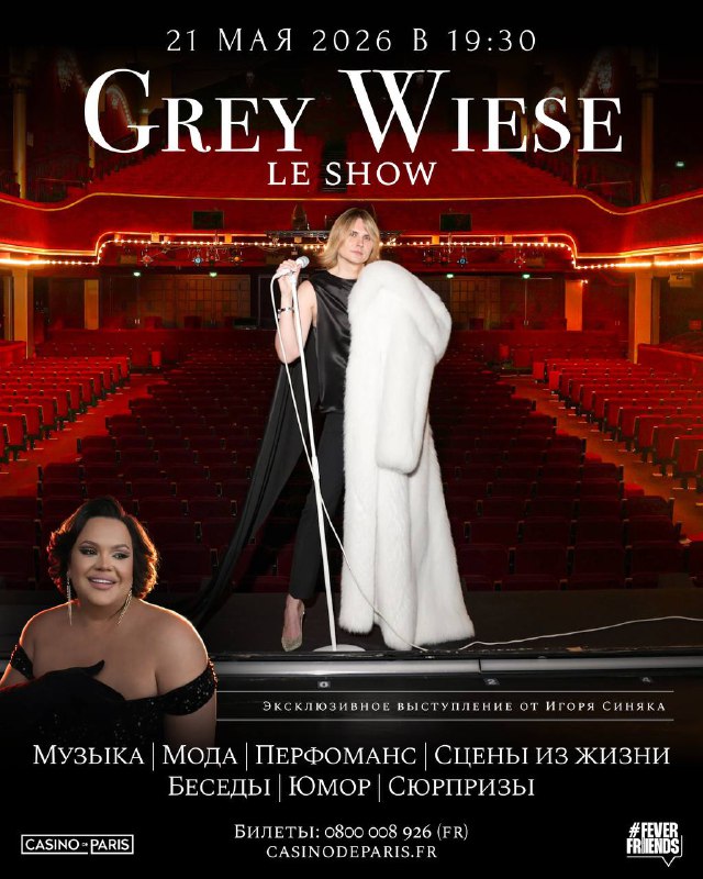 🤩 Эксклюзив: Сережа Greywise даст свой первый концерт — там выступит создатель ВПШ Игорь Синяк Первый концерт Сергея состоится уже 21 мая в Париже, в Casino de Paris. На шоу эксклюзивно выступит со