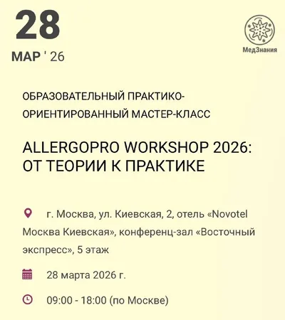 Дорогие коллеги! Приглашаем вас на 🩺 AllergoPro Workshop 2026: от теории к практике — образовательный практико-ориентированный мастер-класс для врачей 🗓️ 28 марта 2026 года В программе: 👆 Н