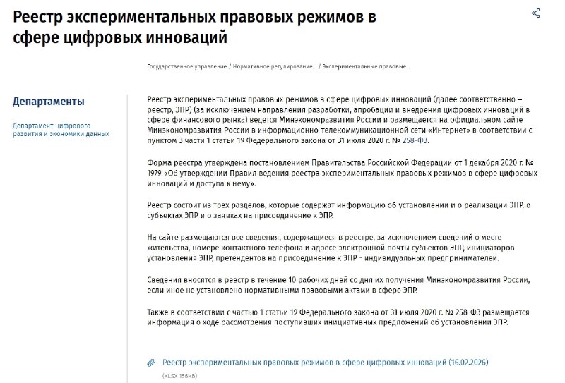 Та - дам! Что мы видим? ⚡️Реестр экспериментальных правовых режимов в сфере цифровых инноваций Как интересно! Сведения об экспериментальных правовых режимах в сфере цифровых инноваций на сайте Минис