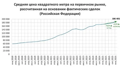 Продолжаем тему про рост цен на строящееся жилье. Квартиры на первичном рынке жилья в феврале 2026 года в России в среднем подорожали на 8,9%, до 186,48 тыс. руб. за кв. м. Такие данные приводит Еди