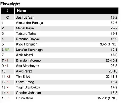 🥊 Обновление рейтингов UFC Англичанин Лонир Кавана (10-1 в ММА, 3-1 в UFC) залетает в топ-6 наилегчайшего веса после победы над Брэндоном Морено 👀 t.me/KFCshka #мма #ufc #юфс