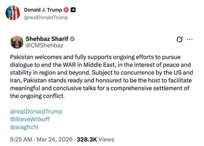 🇺🇸 Дональд Трамп репостнул запись Шарифа с предложением провести американо-иранские переговоры в Пакистане. Подпишись на Karabakh Today