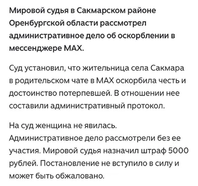 В MAX начали штрафовать за оскорбления Жительница Оренбургской области получила штраф 5000₽ за публичные оскорбления в родительском чате 📞