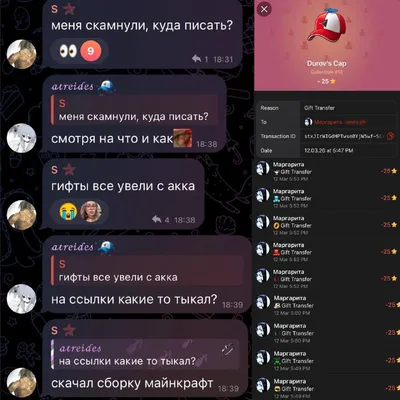 😁 Потерял подарки из-за мода! Некий пользователь решися скачать мод на Minecraft, но в итоге лишился всех своих подарков, включая 🎁 Кепку Дурова за 700 TON (910$)…