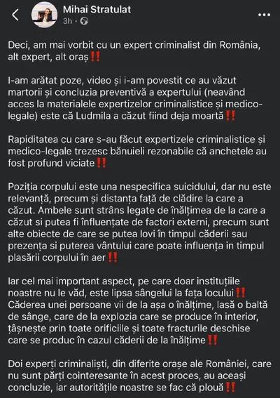 ‼️ Людмила Вартик выпала из окна уже будучи мертвой К такой версии, не сговариваясь, пришли два эксперта-криминалиста из Румынии, к которым обратился за вердиктами по поводу громкого самоубийства же