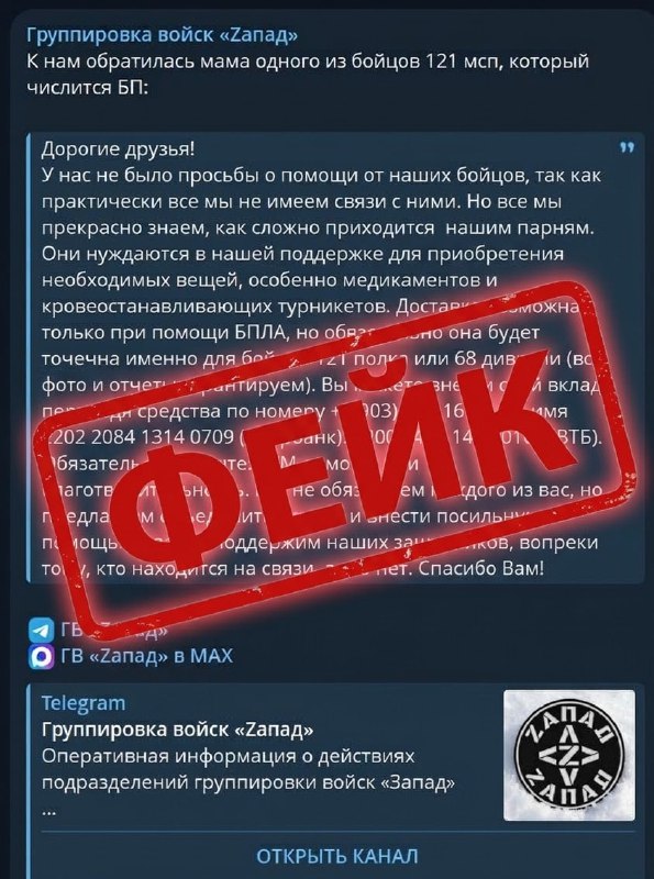 🔴🔴🔴 Мошенники (ЦИПсО) создали канал-клон и просят помощь якобы для 121 полка 68 дивизии 🟤Не переводите деньги — они уйдут мошенникам. 🟤Не пишите админам — так враг выведывает данные о бойцах (п