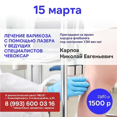 15 марта хирург-флеболог проведет прием в Козьмодемьянске 🌟 Не откладывайте заботу о себе в долгий ящик. Лечение варикоза с помощью лазера у ведущих специалистов Чебоксар 💥 🔥 15 марта, диагности