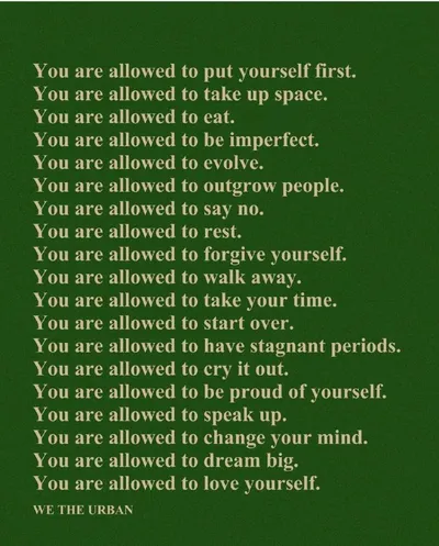 У тебя есть право ставить себя на первое место. У тебя есть право занимать место. У тебя есть право есть. У тебя есть право быть неидеальной. У тебя есть право развиваться. У тебя есть право перерасти
