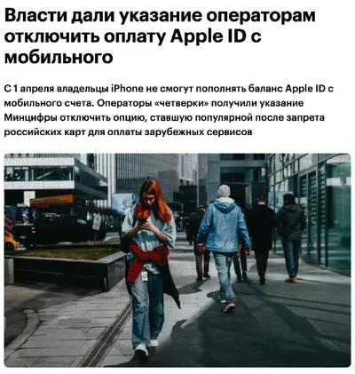 Начиная с 1 апреля владельцы iPhone не смогут пополнять баланс Apple ID с мобильного счёта. Мобильные операторы «большой четвёрки» получили указание Минцифры отключить такую опцию — РБК. Причина — нео