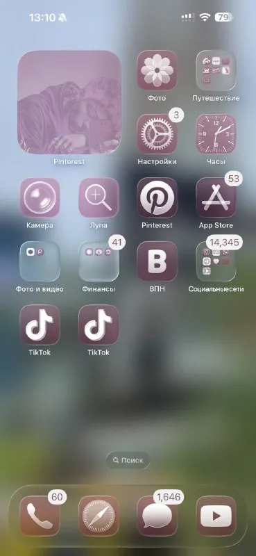 Я кароче хотела красиво все оформить и сделала все приложения в розовом цвете + добавила виджет с фоткой из пинтереста, а она блять тоже розовая🫥