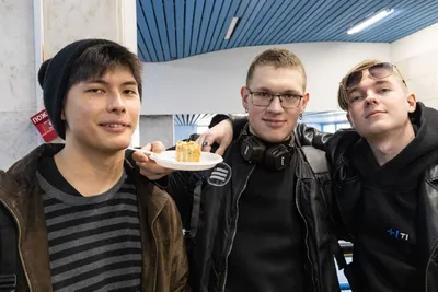 96-летие Московского авиационного института отметили сегодня сразу в трёх точках кампуса — в ГУКе, 24-м корпусе и трёшке. Праздничный торт ушёл за минуты, но ещё быстрее разлетелся подарочный мерч, ко