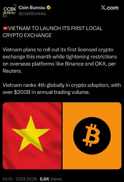 🐦 Вьетнам запускает свою первую криптобиржу Страна готовит запуск первой лицензированной криптобиржи уже в этом месяце. Параллельно власти усиливают давление на зарубежные платформы вроде Binance и