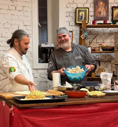 Великопостный мастер-класс, лекция по русской кухне и возможность приготовить жаворонки и лествицы с Максимом Сырниковым и Олегом Ольховым - 22 марта в "Кремлëвской кухне". Друзья, двое ведущих пер