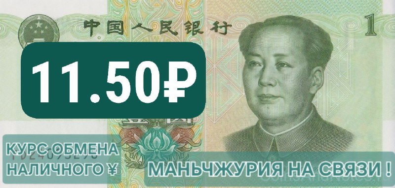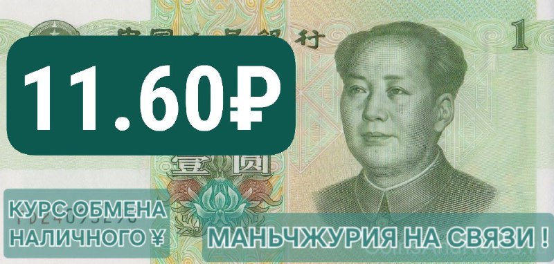 Средневзвешенный курс обмена наличных юаней сегодня в Маньчжурии с обеда 11,50₽. К вечеру ожидается подъем до 11.60₽ за 1¥RMB.