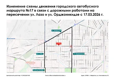 ❗️Уважаемые жители и гости города Мариуполь❗️ В связи с дорожными работами на пересечении ул. Лазо и ул. Орджоникидзе, городской автобусный маршрут №17 «пр-т Маршала Жукова - Комсомольский б-р - пр-т