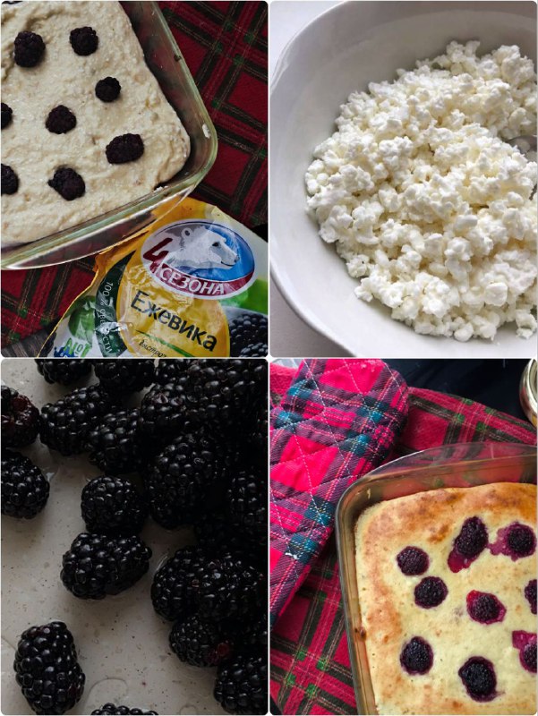 Творожная запеканка с ягодным настроением Доброе утро! Сегодня побаловала себя и Илью, вкуснейшей творожной запеканкой с нежным бананом и ароматной ежевикой. Беру всегда замороженные ягоды от "4 се