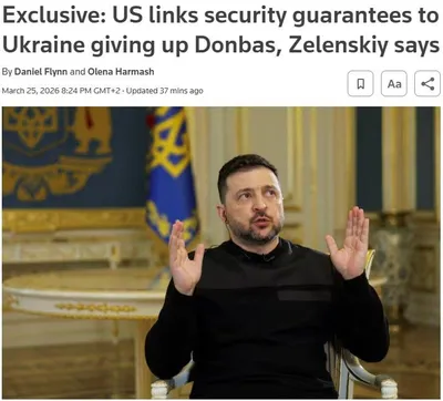 США выдвинули условием, что их предложение о гарантиях безопасности будет передача Киевом всей восточной части Донбасса России, но это несет угрозы Украине и ЕС, заявил Владимир Зеленский в интервью R