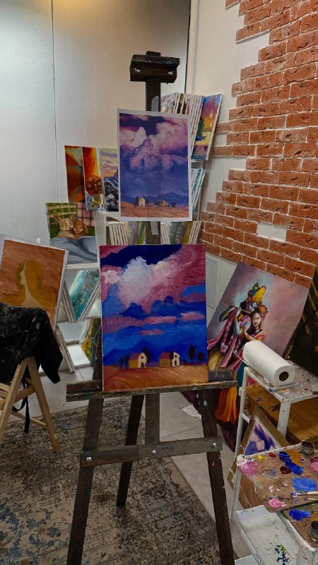 Первый весенний день захотелось провести максимально творчески и незаурядно 🌷 Выбрала для этого мастер-класс в студии «Рисуй» 🎨 Я писала картину «Грозовой перевал» маслом на холсте под чутким руков