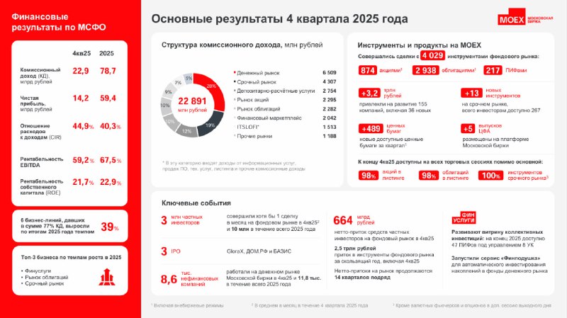 🙂 Публикуем результаты МСФО за 4кв и полный 2025 год Основные цифры 2025 года: 🙂 Комиссионные доходы — 78,7 млрд ₽ 🙂 Чистый процентный доход — 50 млрд ₽ 🙂 Доля комиссионного дохода в структуре о