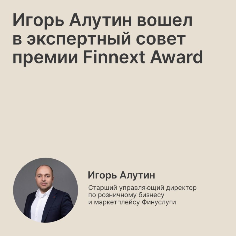 Определим лучшие финтех-проекты 2025 года Игорь Алутин вошёл в экспертный совет Finnext Award. Премия отмечает компании, которые реализовали инновационные проекты в финансовом секторе. Подать заявку