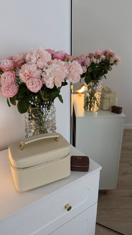 мое сердце замирает от этой красоты , уже несколько лет самые любимые косметички от Gi beauty , взяла в новом молочном оттенке 🤍 ии вот такую малышку для украшений , удобно для поездок , чтобы точно