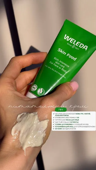готова петь оды любви этому питательному крему от Weleda 💚 всю зиму спасал мою кожу от сухости , он супер универсальный можно нанести и на руки и как маску на лицо и даже на волосы ! для сухой кож