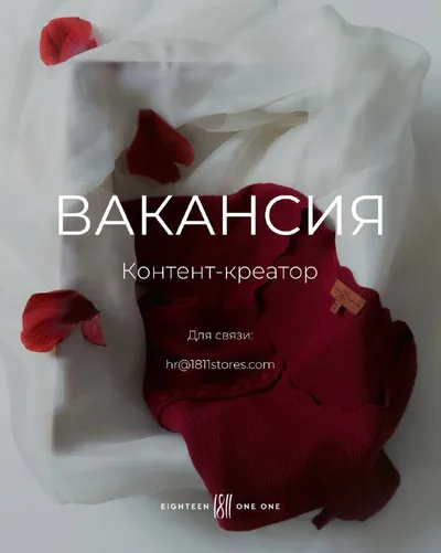 ВАКАНСИЯ 🤍 Мы ищем контент-креатора в команду 1811. Человека, который будет генерировать идеи вместе с нами и наполнять мир Eighteen One One новыми визуальными историями. Что предстоит делать: —