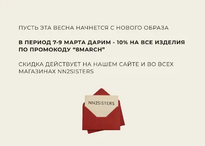 8 и 9 марта во флагманском магазине NN2SISTERS в Новосибирске вас будут ждать праздничные угощения, скидка –10% на весь ассортимент и атмосфера настоящей весны 🤍