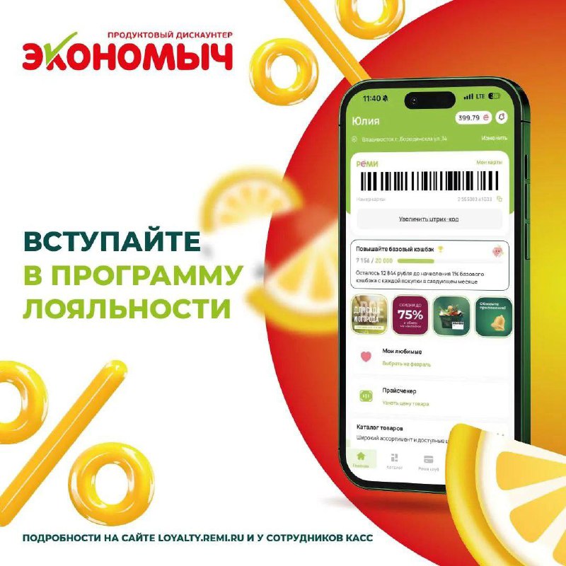Программа лояльности теперь в ЭКОНОМЫЧЕ Жителям доступно накопление бонусов за покупки в сети дискаунтеров. В дальнейшем ими можно оплачивать до 100% стоимости товаров. Таким образом торговая сеть
