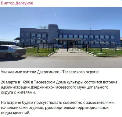 На встрече будем присутствовать МЫ, Дергунов Виктор Николаевич, глава Дзержинско-Тасеевского муниципального округа, совместно с заместителями, начальниками отделов, руководителями территориальных подр