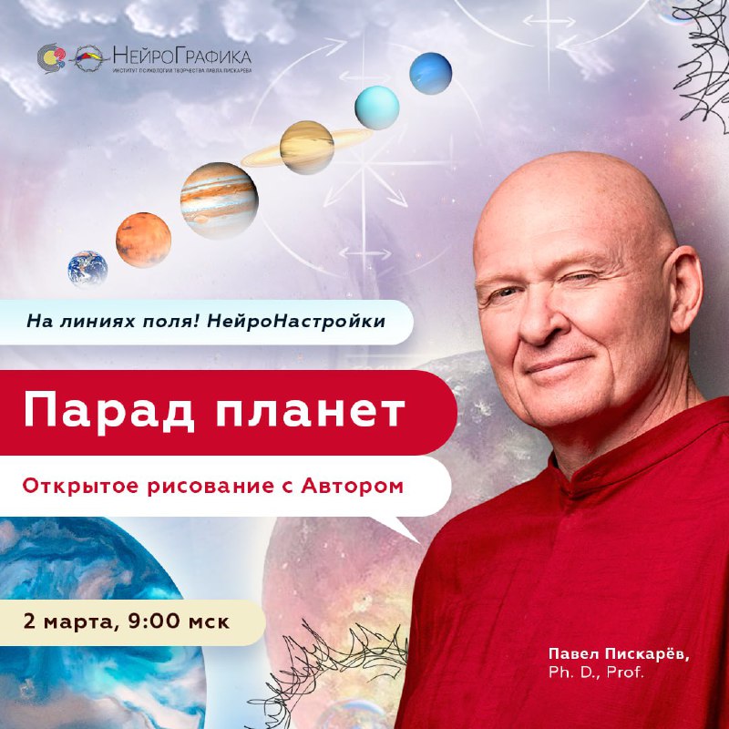 ❤️ Открытое рисование с Автором! 2 марта, 09:00 мск Парад планет На линиях поля! НейроНастройки Павел Пискарёв Ph. D., Prof. В философии НейроГрафики мы выстраиваем свою реальность через маркер. Л