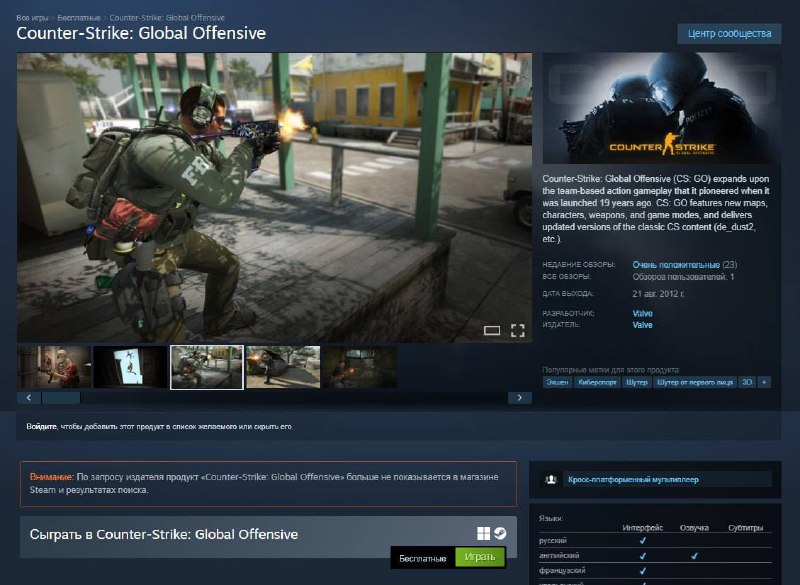 ⚡️ CS:GO внезапно вернулась в Steam — игра уже доступна для установки Из минусов: матчмейкинг пока недоступен, но зато уже дают сыграть с ботами